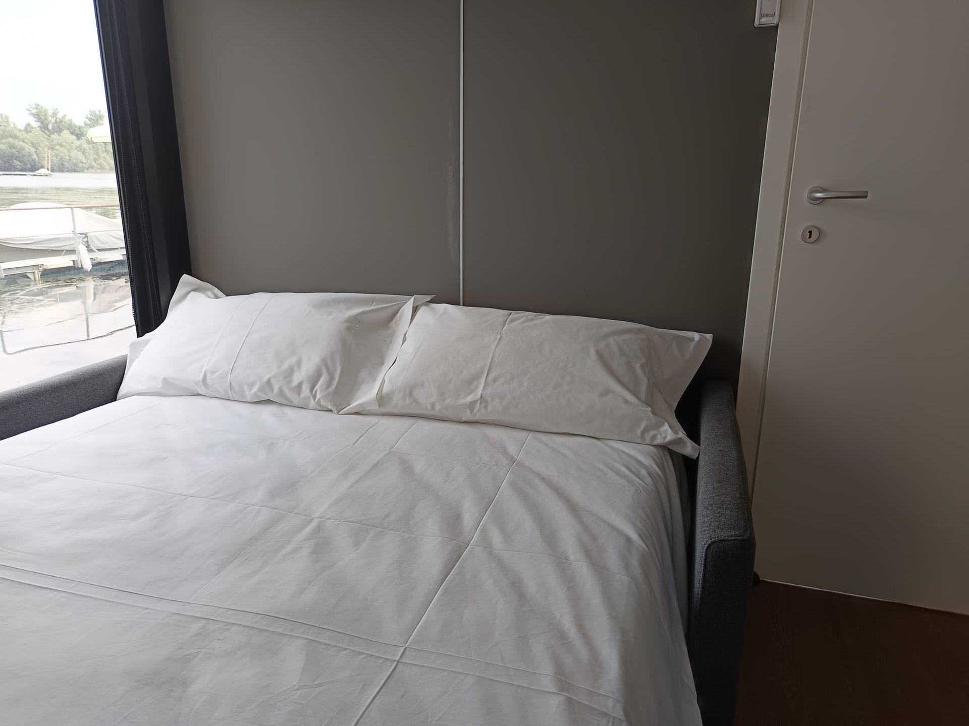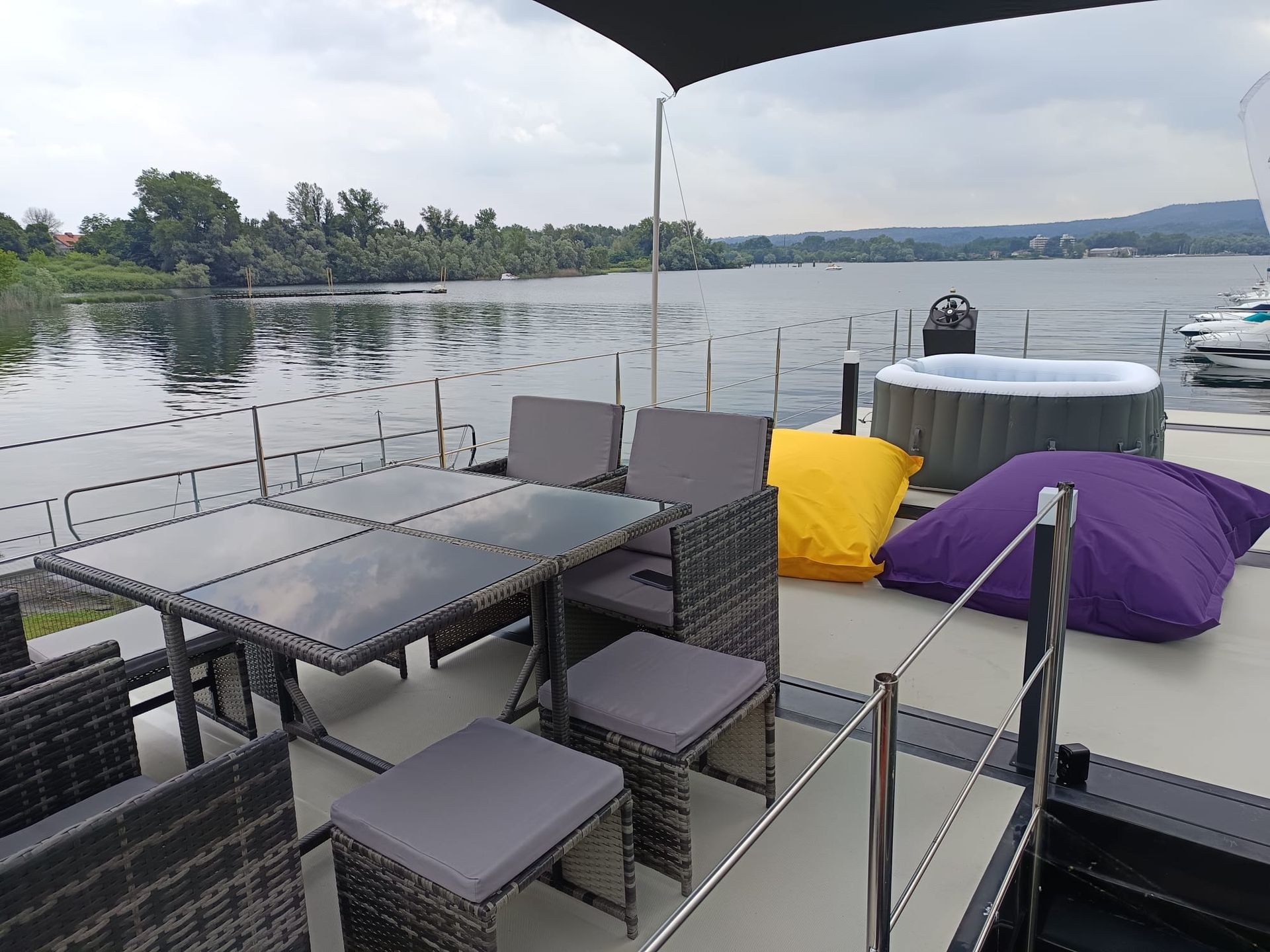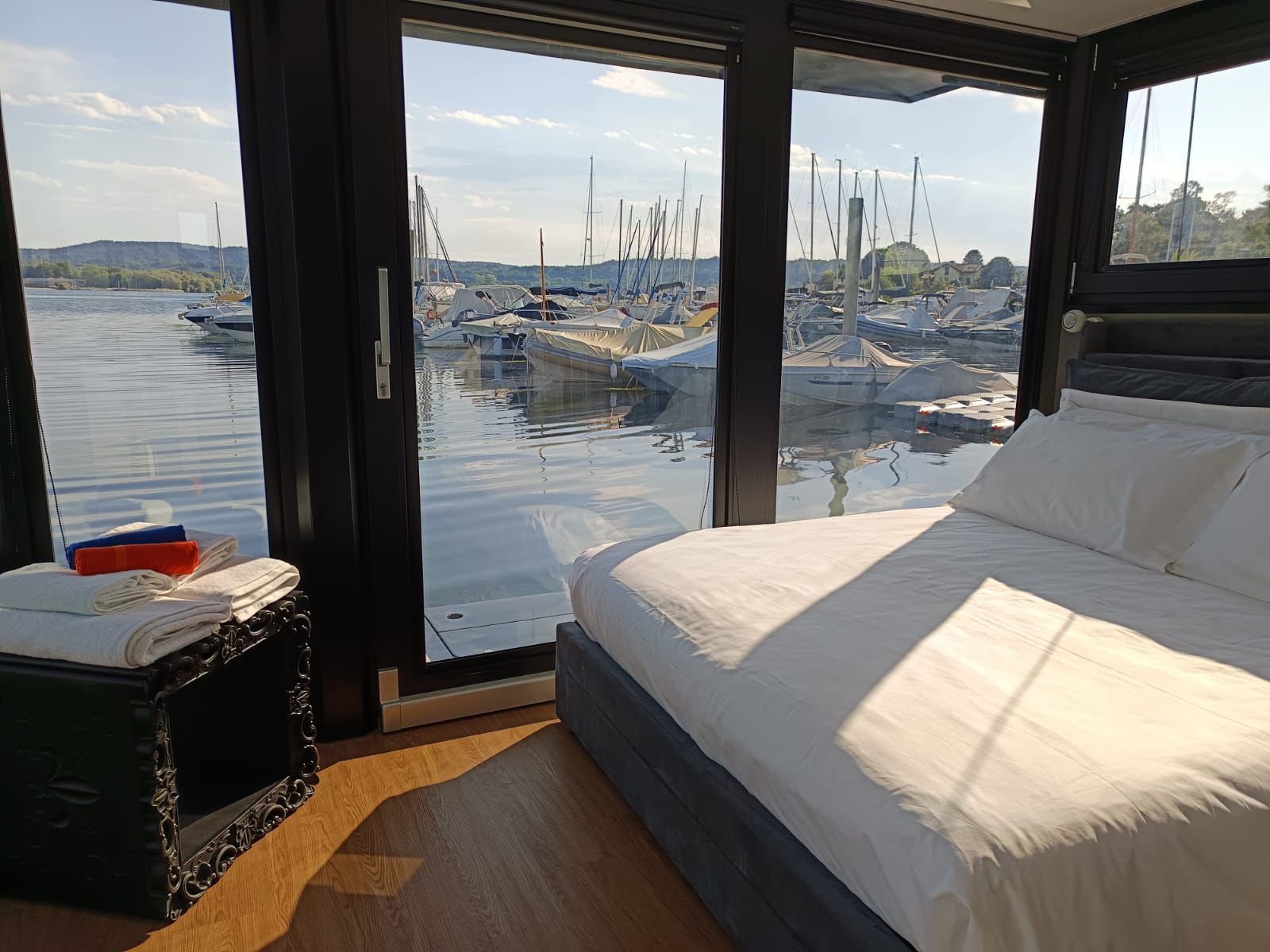 Un’esperienza unica vi attende a bordo della Bigigio Diamond, una house boat innovativa, raffinata e perfettamente integrata con la natura che la circonda. Caratterizzata da ampie vetrate panoramiche, vi permette di ammirare senza ostacoli la bellezza mozzafiato del Lago Maggiore, godendo di luce naturale e viste spettacolari in ogni momento della giornata. Per chi desidera maggiore riservatezza, sono presenti comode tende oscuranti che garantiscono la massima privacy.
