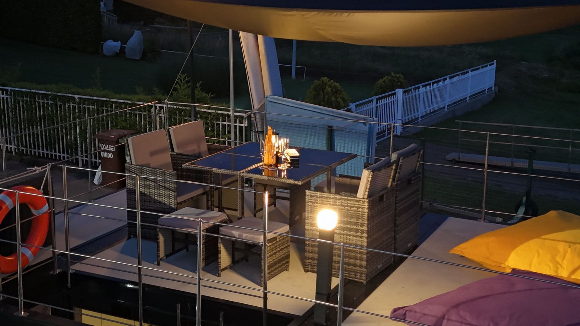 • Un ampio tavolo da pranzo con comode poltrone per pranzi e cene all’aria aperta